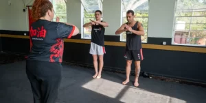 Defender-se Contra Diversos Ataques: A prática inclui defesa contra socos, chutes e tentativas de agarre.